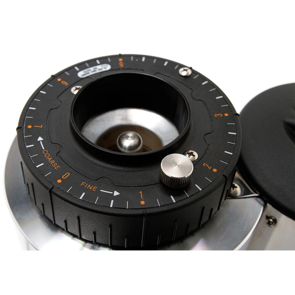 We regard Ceado highly in terms of the innovative design elements present in all of their grinders. Like the others, the E6X features a high capacity overload switch, which cuts the grinder’s power if a blockage occurs so as to avoid any damage to the motor. Our favorite feature has to be Ceado’s Steady Lock Burr technology. This design keeps the burrs at a constant distance apart from one another, whether they’re grinding for one shot or one hundred. In short, the Steady Lock Burr technology makes grinding with the E6X seriously consistent. If you need a bigger grinder for a high volume environment, the Ceado E7 comes in two versions; both feature a doser, but one grinds manually like the E6X, and the other can automatically refill the doser when it hits empty so it’s always ready to go.