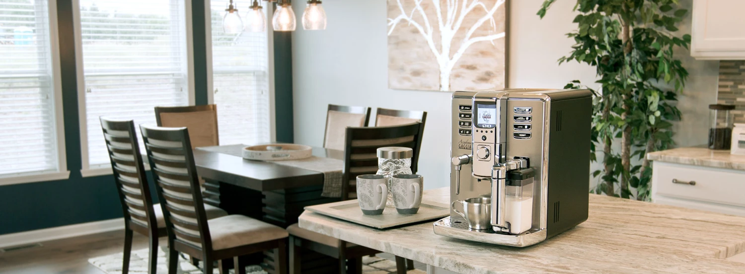 The Accademia impressed us with its detachable milk carafe, which snaps into place, frothing up delicious bevvies on demand and automatically rinsing afterward. One thing to keep in mind with the Accademia, it doesn’t get milk straight from the refrigerator quite as hot as some other machines. It’s within the temperature sweet spot, but, if you like your milk on the hotter side, you can always steam with the wand, or take a look at the Gaggia Velasca Prestige or Gaggia Babilia for hotter automatic steaming machines. Back to the Accademia, it’s a smart machine, alerting you to any maintenance needs along the way, and descaling all on its own. We think the Gaggia Accademia is a modern, attractive machine that would look great in any kitchen. It features a contemporary stainless steel front panel punctuated by a bright display and intuitive push-button controls. With its large capacities, varied drink offerings and reliable design, the Accademia is the ideal companion for the coffee loving family or office.